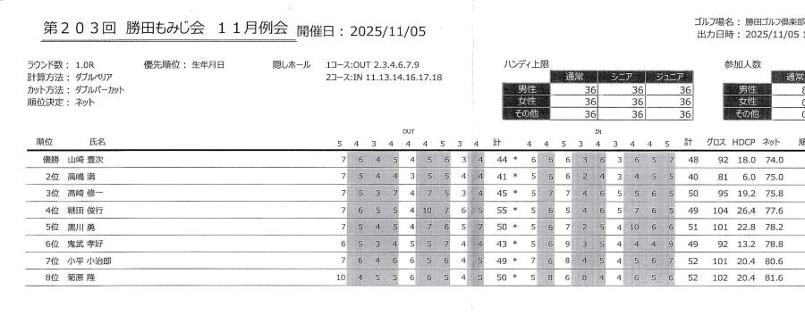 優勝・・・・.・ 山﨑豊次 86/73.0
