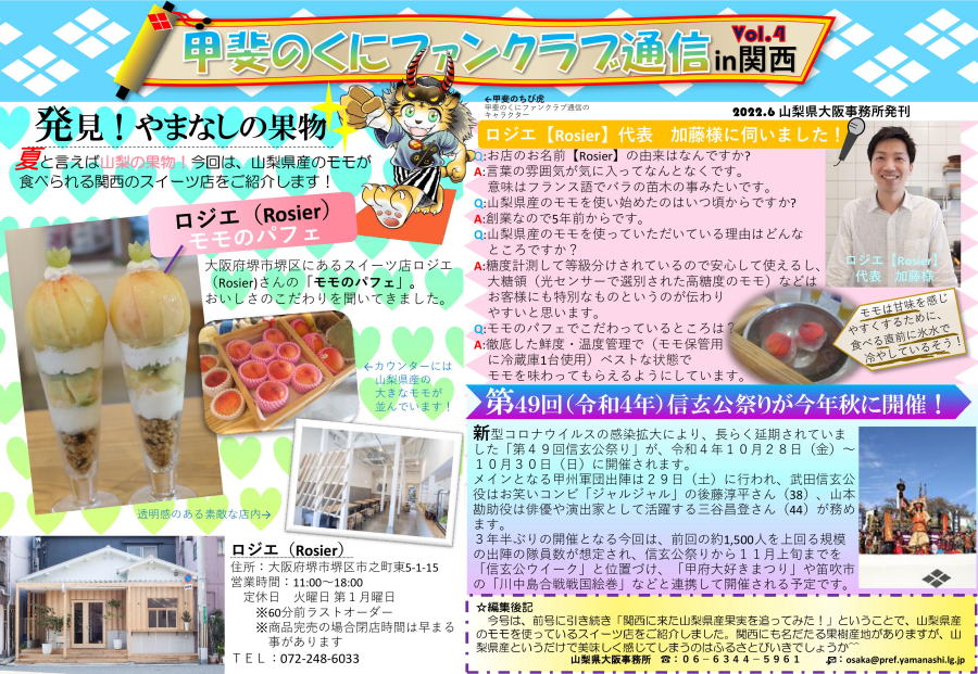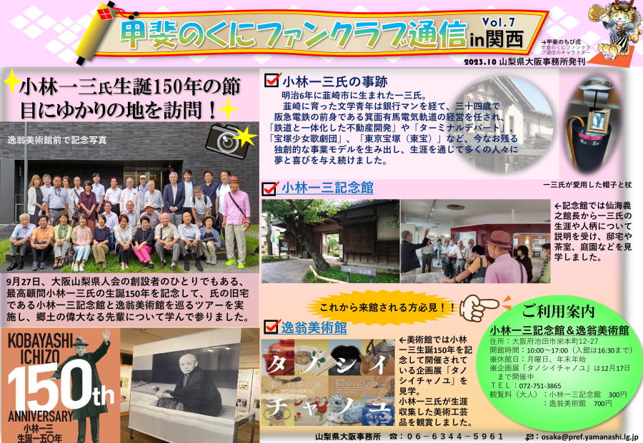 大阪山梨県人会は大正7年に設立され、平成30年には100周年を迎えた歴史ある団体です。会員相互の親睦を深め、