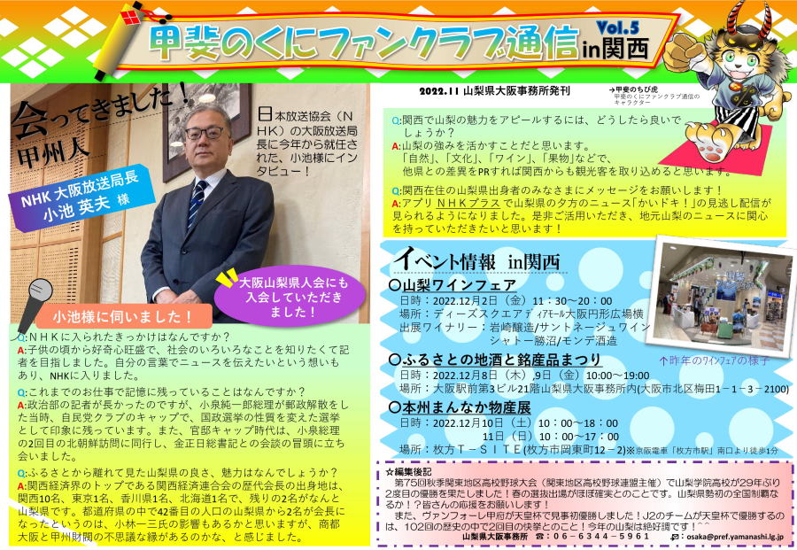 12月31日午後5時からテレビ山梨で30分間の特別番組で 大阪山梨県人会創立100周年記念番組